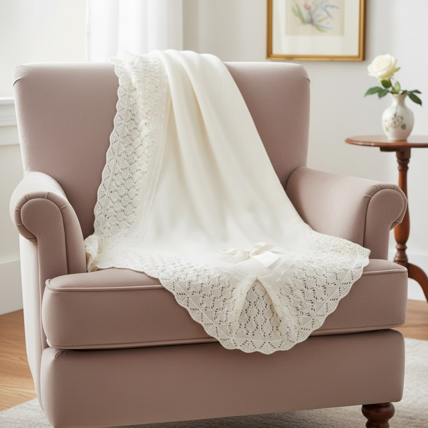 Ideal para bautizo y ocasiones especiales, combinando perfectamente con faldones y conjuntos de ceremonia.
