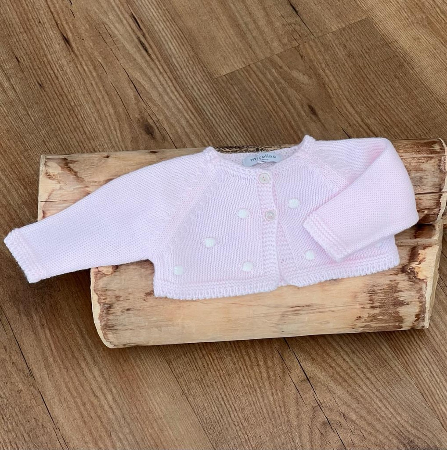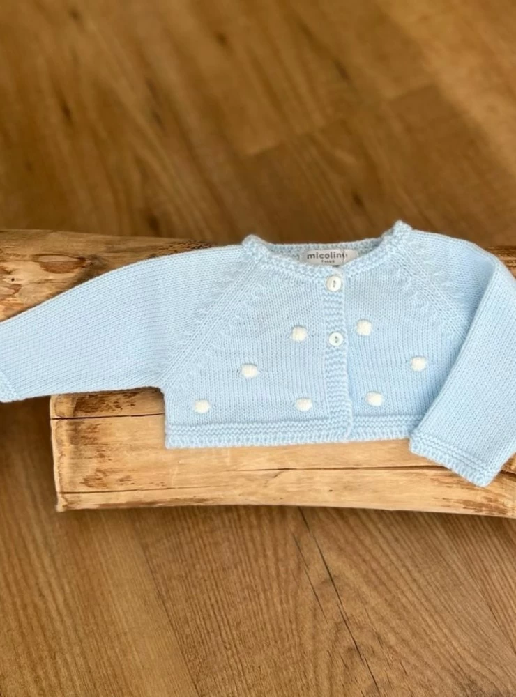 Confeccionada en punto con bodoques artesanales en color crudo.