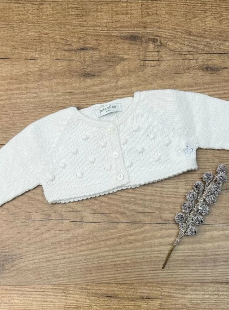 Confeccionado en punto color blanco con bodoques bordado en el mismo color