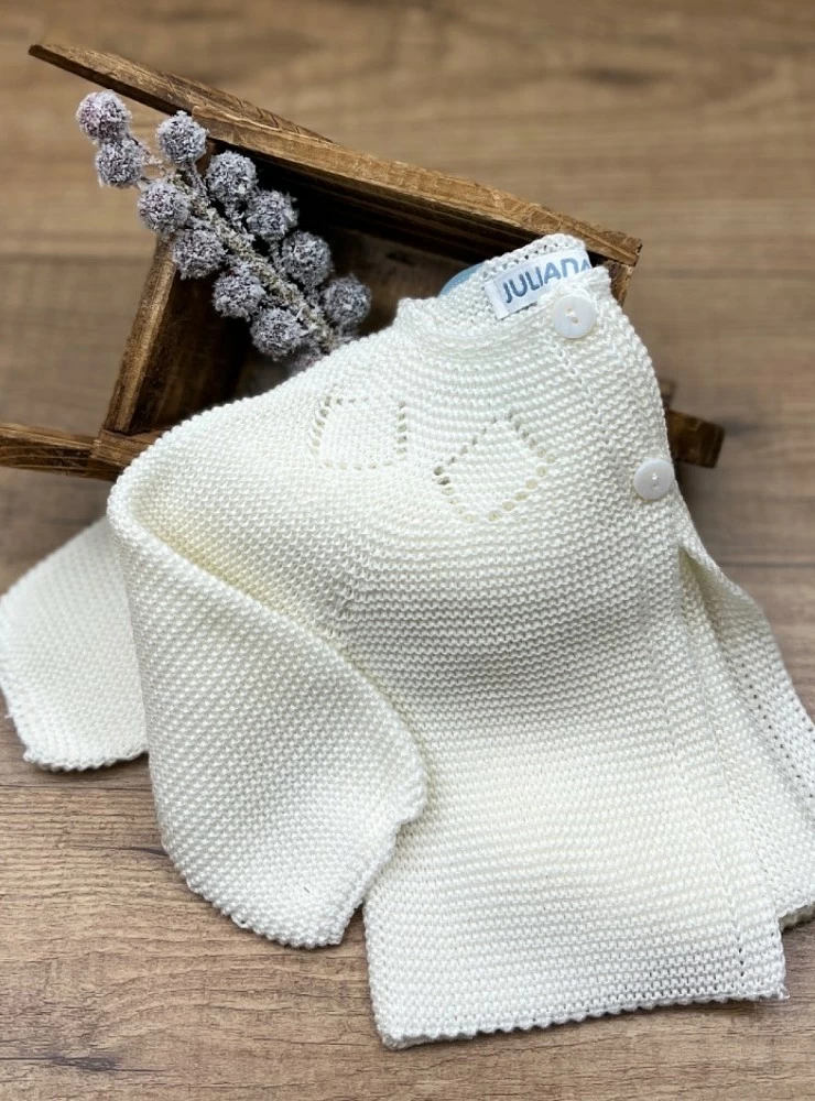 Chaquetita larga de hilo color beige