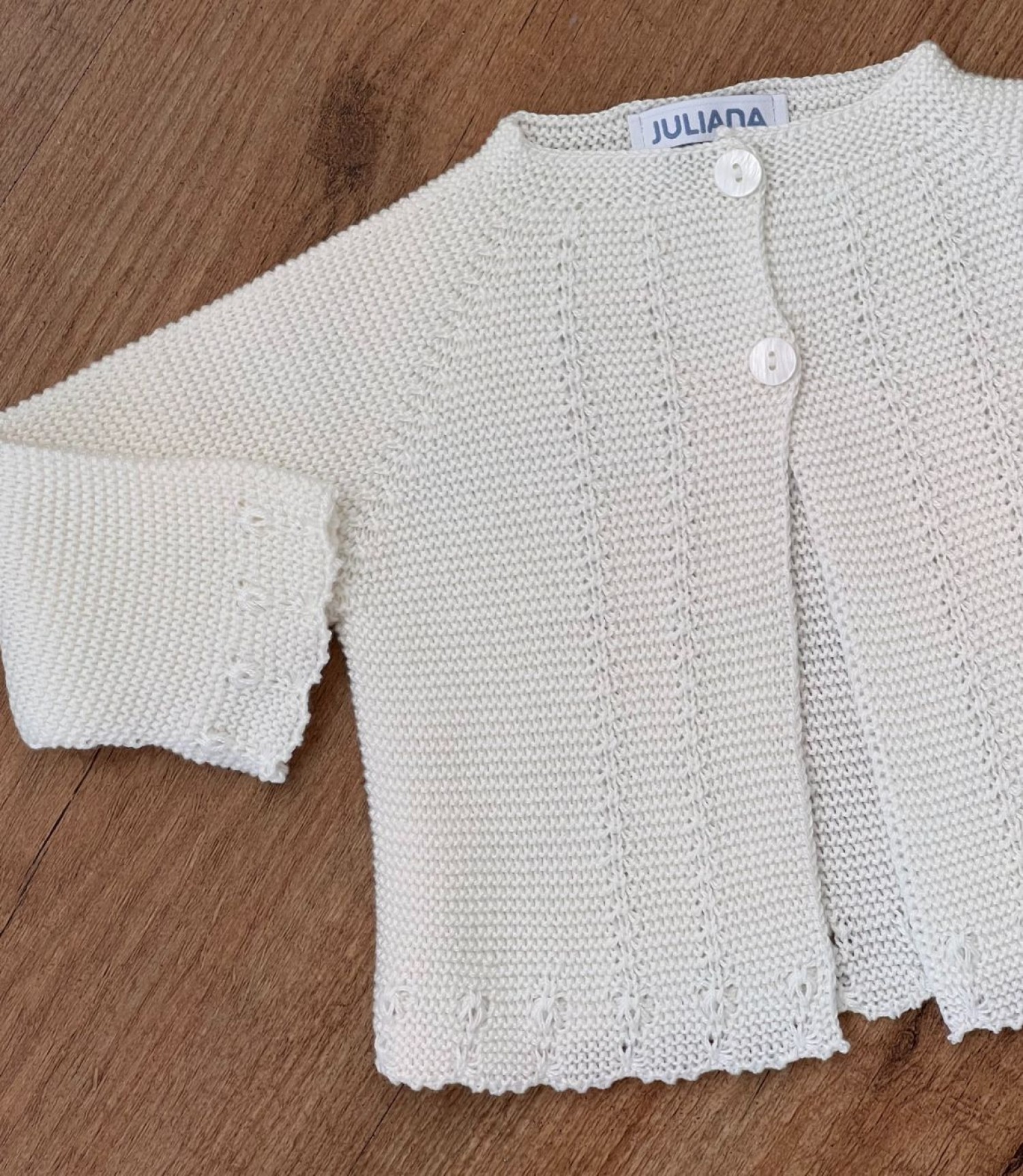 Es perfecta para conjuntos de bautizo y arras.