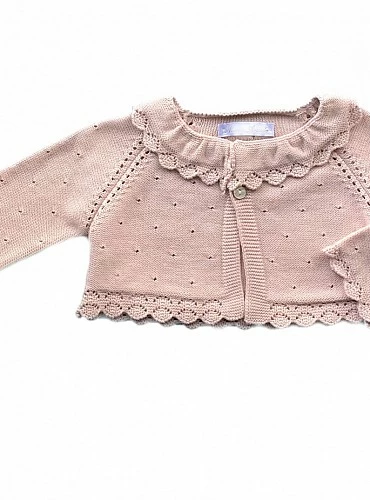Chaqueta de punto de verano dos colores. Coral y azul Jeans. Marca Foque. P-V