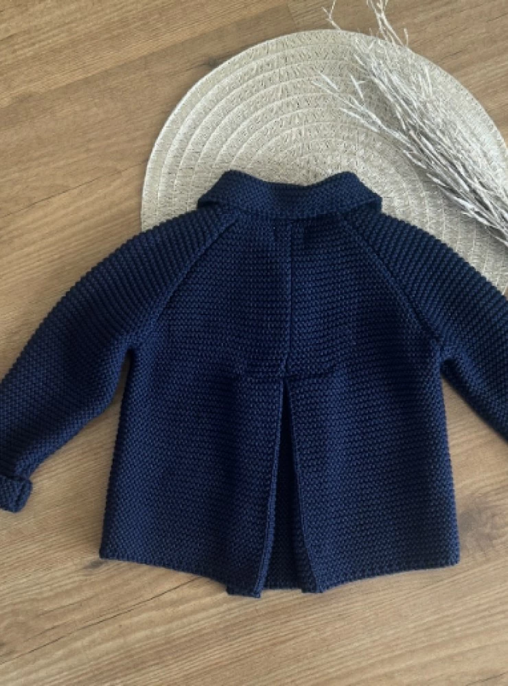 Confeccionado en punto bobo con algodón, lleva cuellos y tablón en la parte trasera.