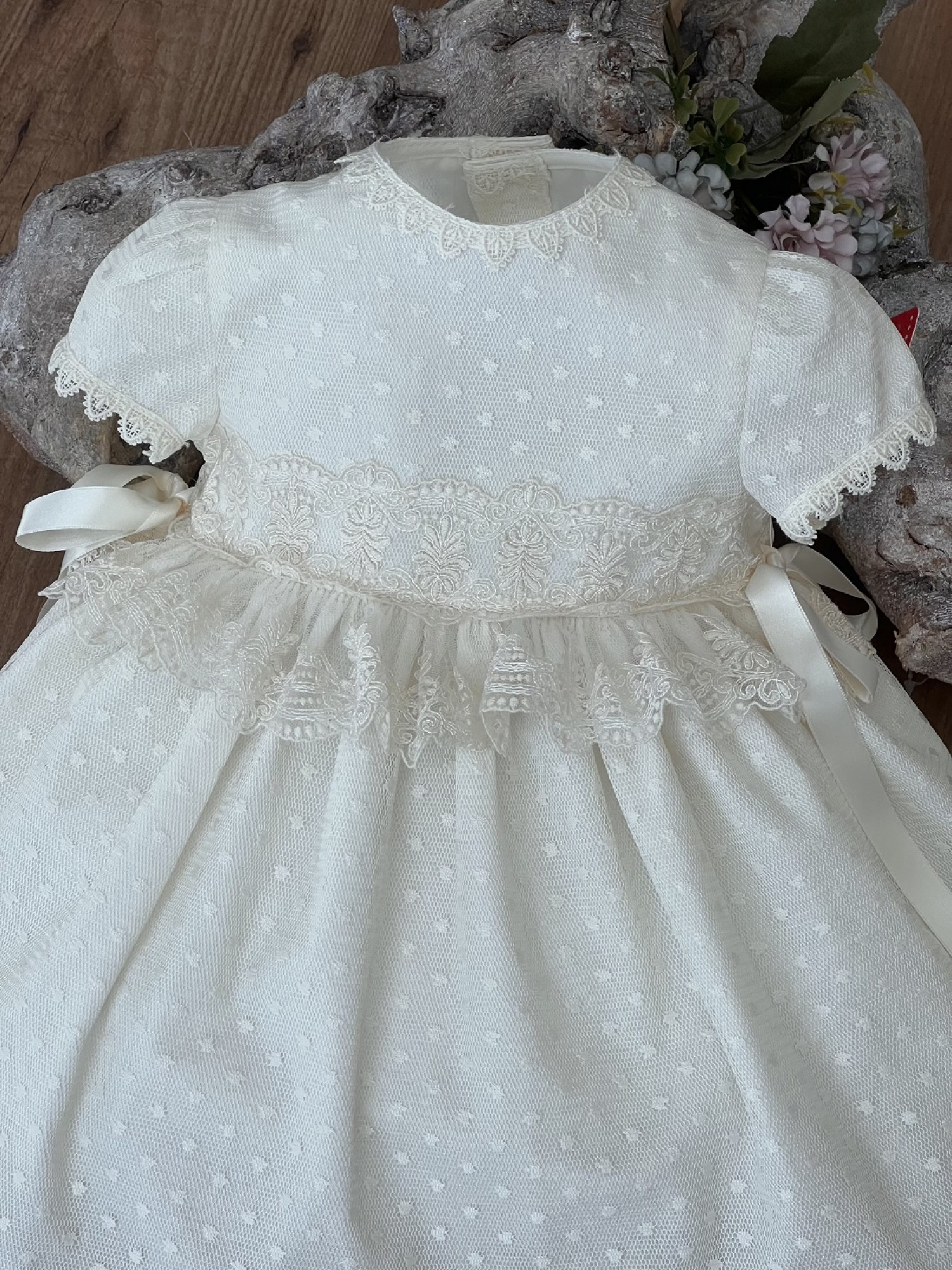 Bonito conjunto elaborado en tul con puntillas chantilly al tono.