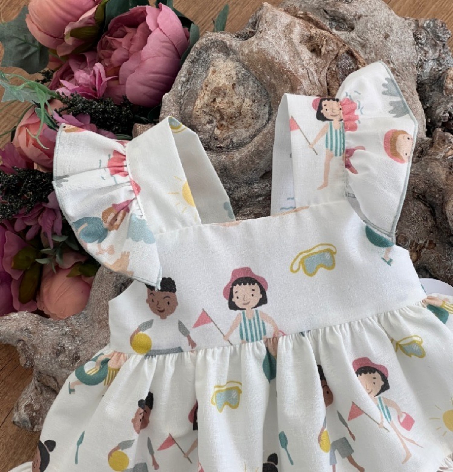 Conjunto confeccionado en popelin con estampado niños. La espalda del Jesusito lleva un bonito lazo verde.