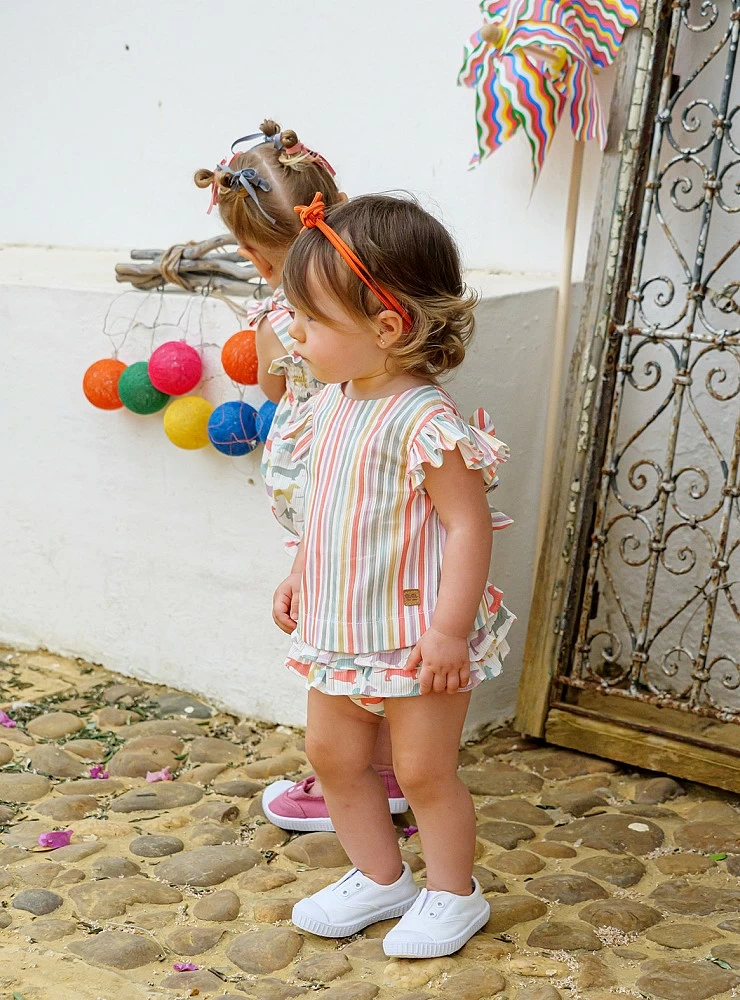 Conjunto para niña blusa y bombacho rayas rosa. Colección P-V