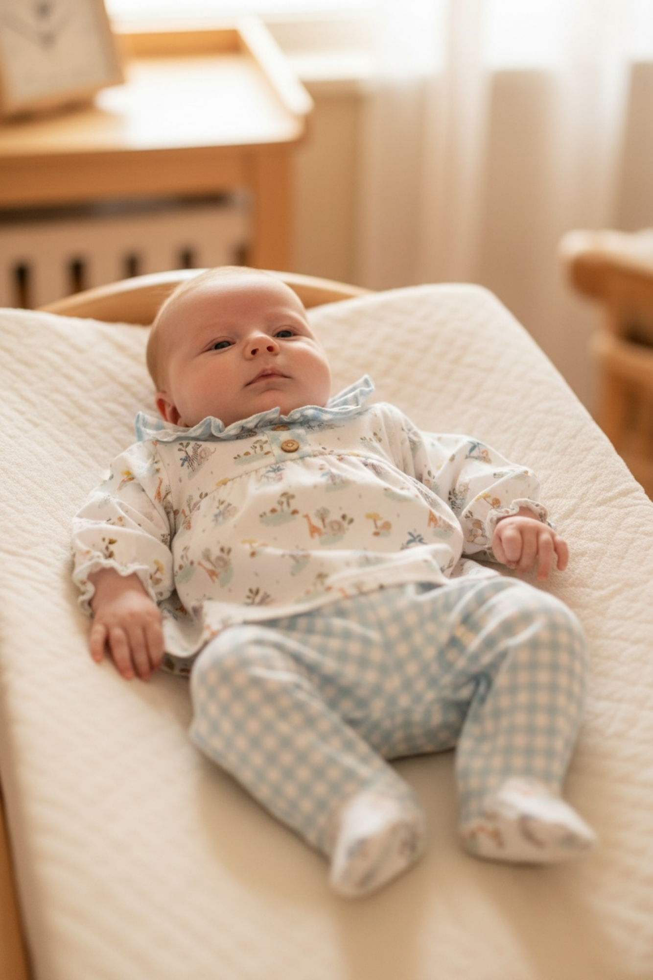 Cuello bebé en vichy verde agua que enmarca la carita y queda precioso.