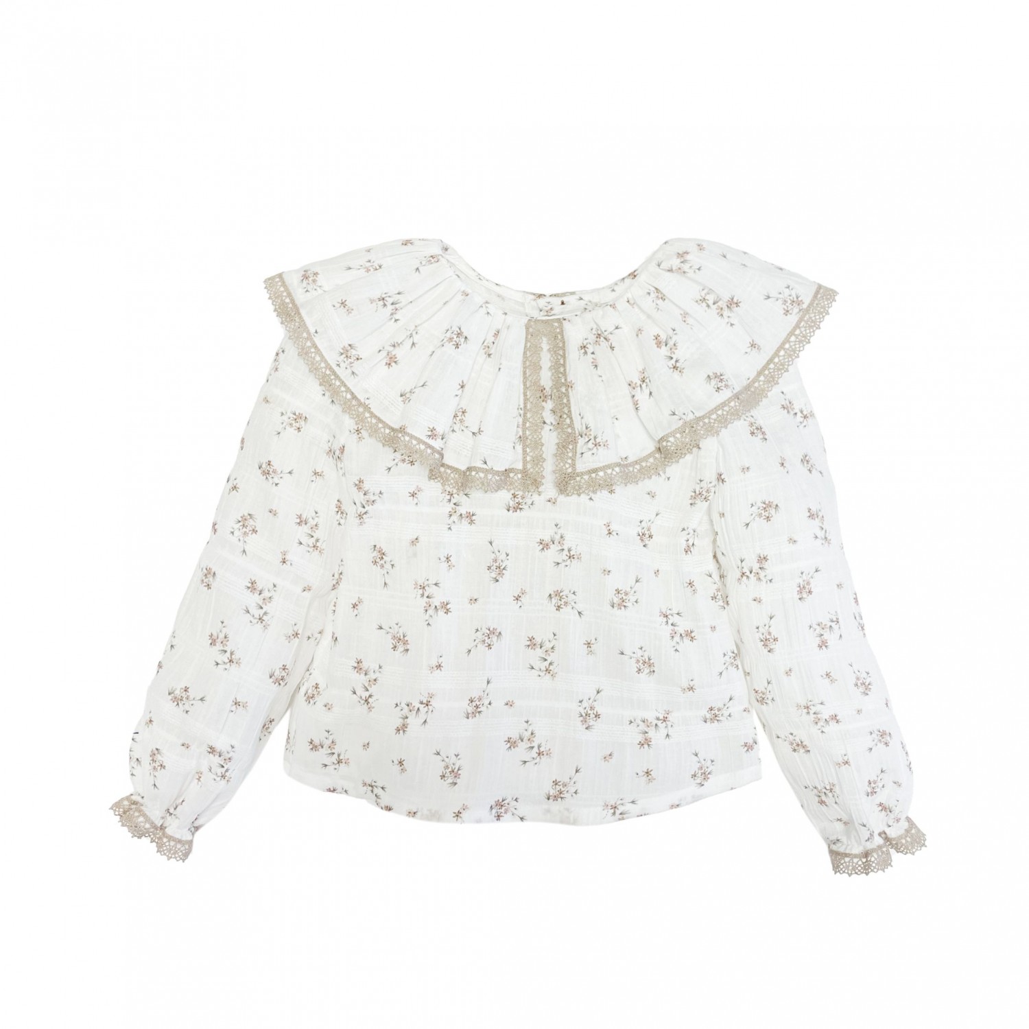 Blusita de bambula crudo con flores en camel y braguita con gomas de viella color camel
