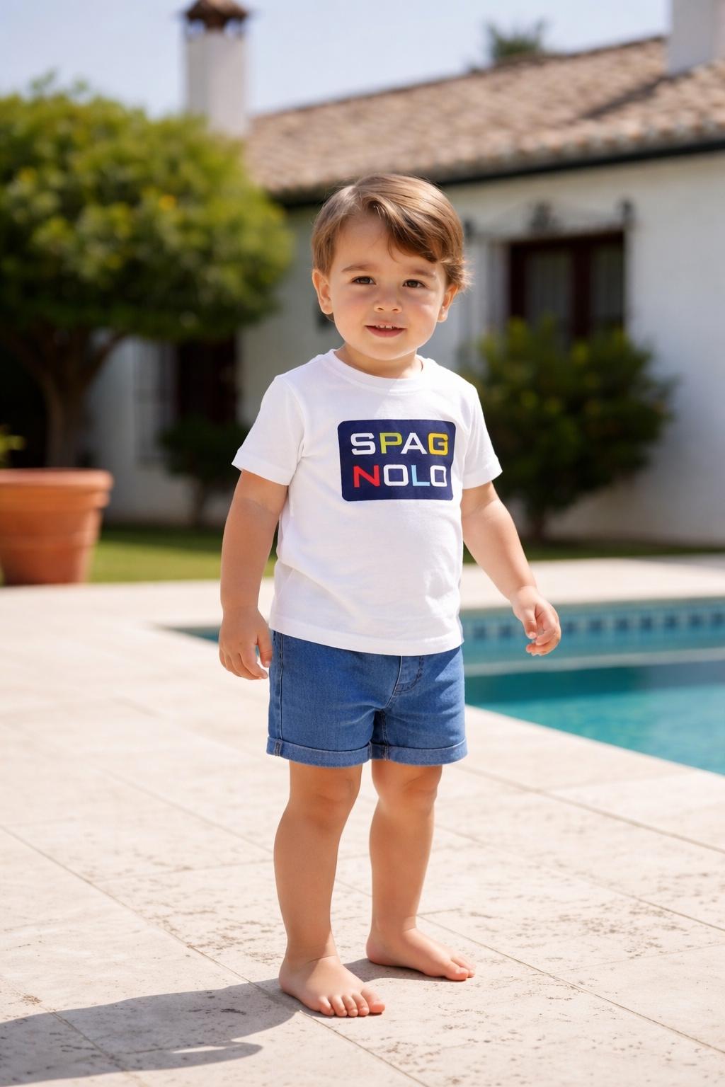 Conjunto infantil de dos piezas formado por camiseta y pantalón corto, ideal para los días de verano por su estilo cómodo y fresco.