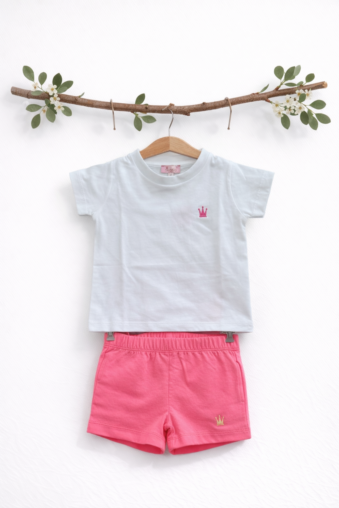 Conjunto de niño compuesto por camiseta y pantalón corto confeccionado en algodón suave de alta calidad.