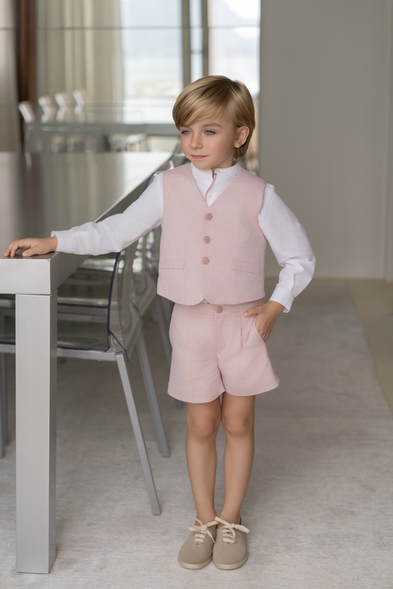 Conjunto de niño de ceremonia en tono rosa empolvado, ideal para eventos especiales