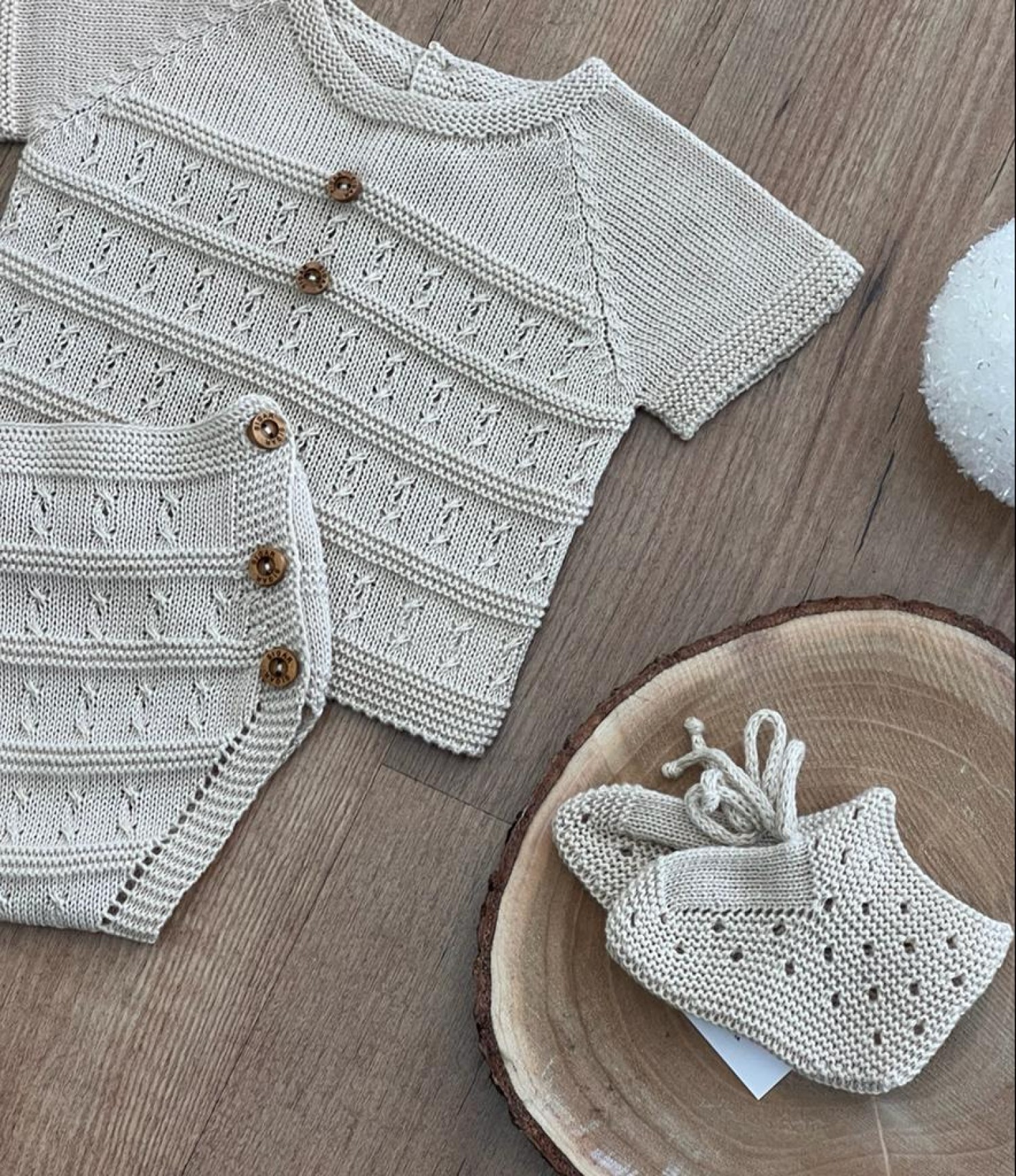 Compuesto por suéter y braguita (tallas 1-3-6 meses con patucos tallas 9 y 12 sin ellos)