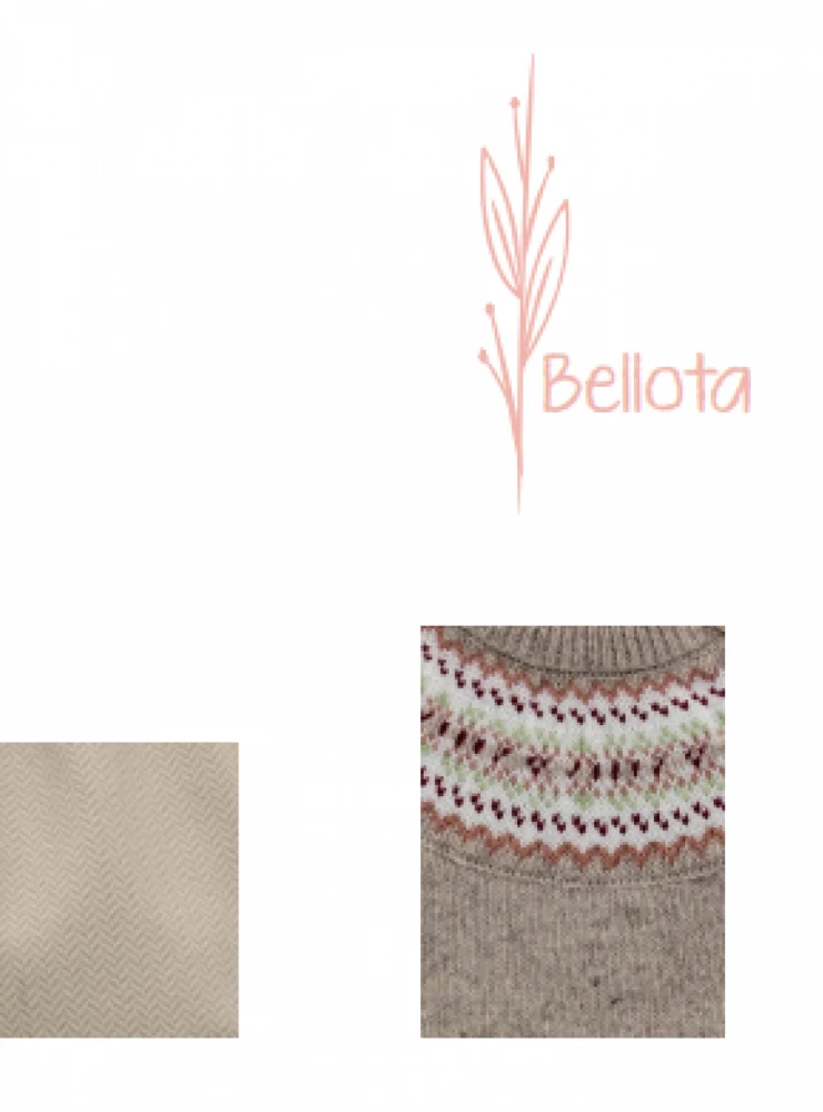 Blusita evasé de popelín beige clarito con cuellos bebé rematados con vies en el mismo tejido espiguilla color arena como el bombacho.