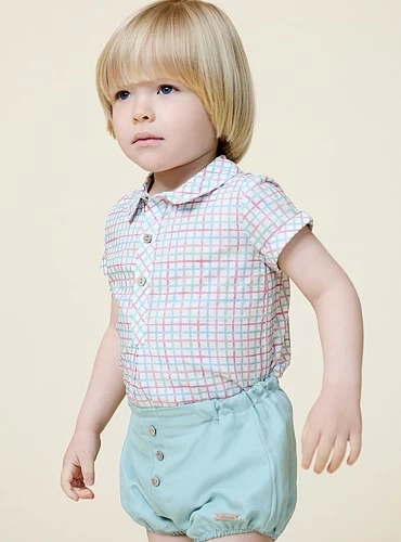 Camiseta de algodón blanco con dibujo de ositos panda y bombachito vichy negro