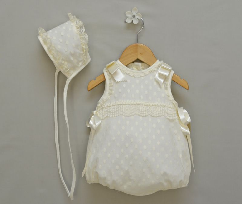 Conjunto pelele y capota de tul bordado. Varias tallas