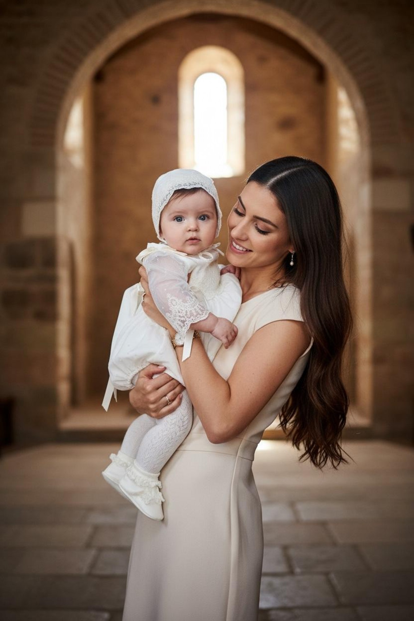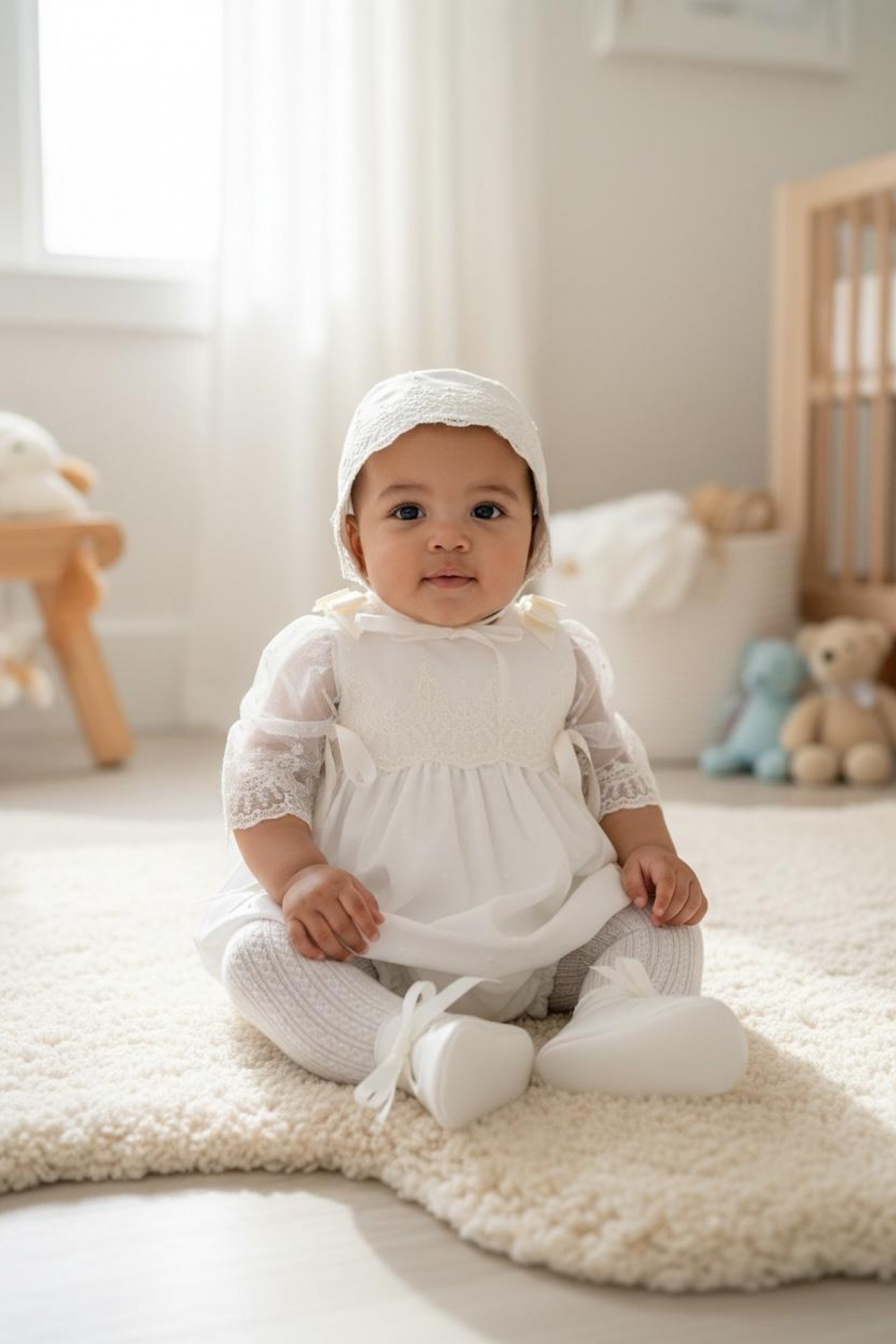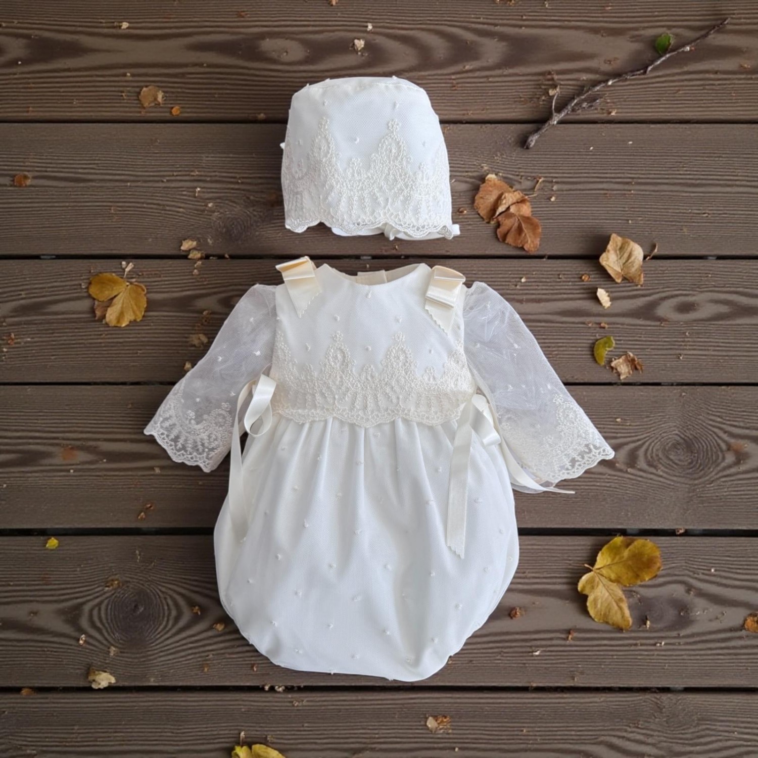 Conjunto de pelele con capota para bautizo y celebraciones especiales del bebé.