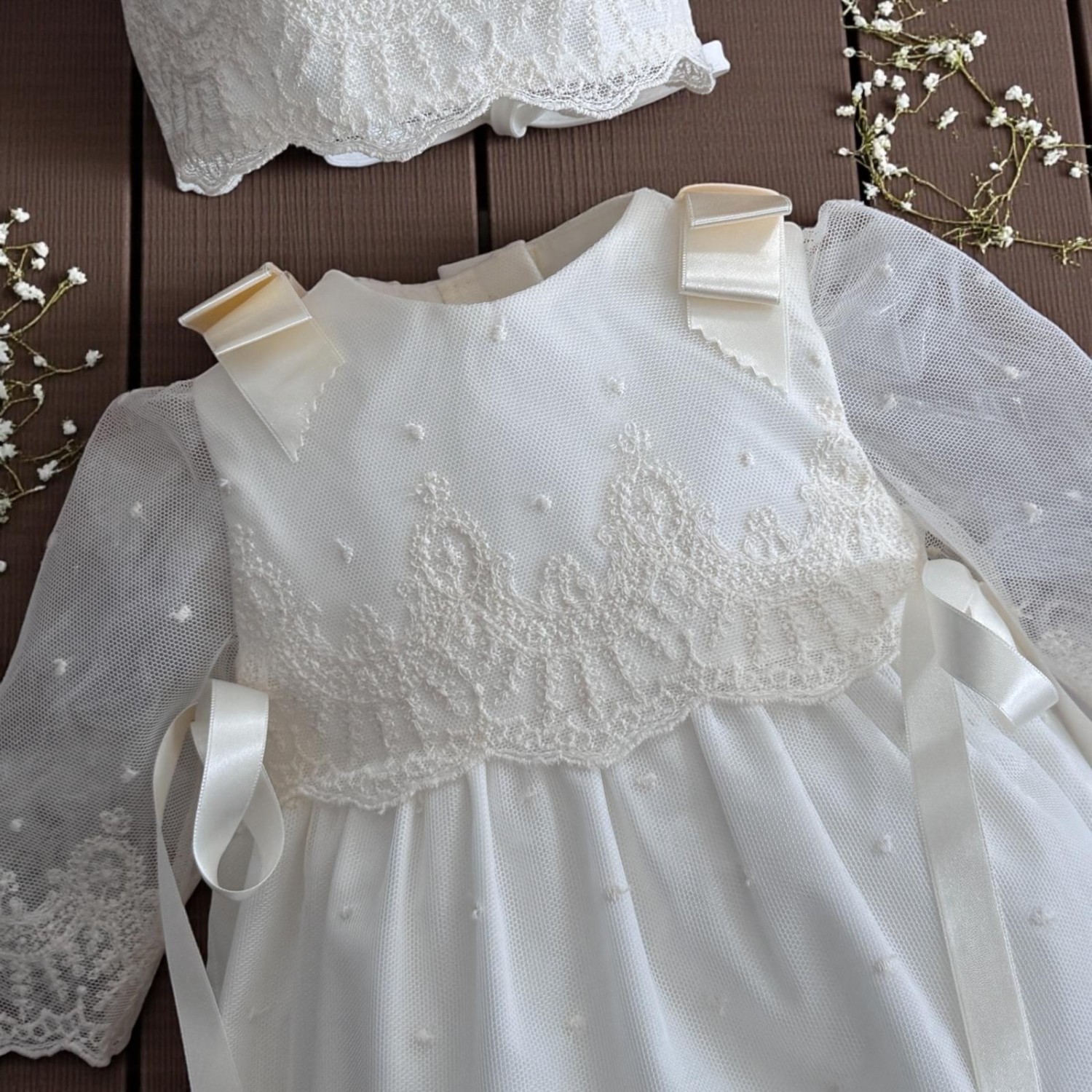 Conjunto Vestido con capota y braga para Bautizo. Colección Fantasía