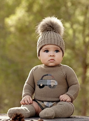 Chaqueta de punto para niño color lino con cuellos de pelo