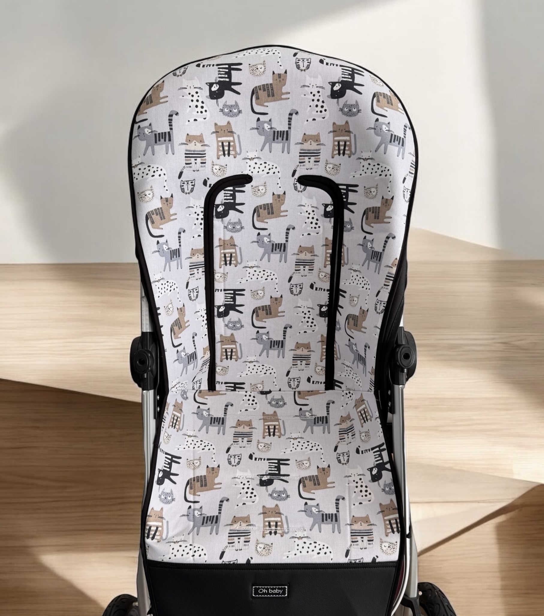 Confeccionada en tejido de algodón en fondo gris clarito con estampado gatitos, lleva remate en negro y polipiel en la parte de los pies para evitar el roce con el calzado