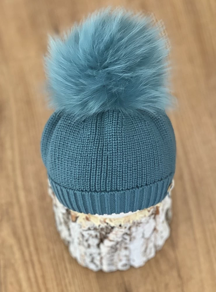 Gorrito en punto Ingles con Pompón de pelo natural.