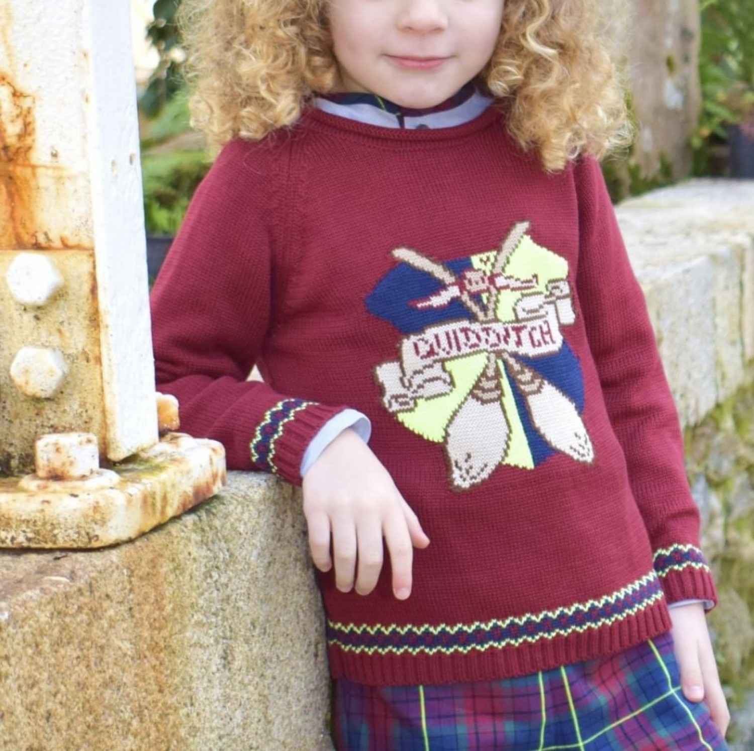 Confeccionado en un punto muy similar al algodón ni pica ni hace bolas. Es color granate con un bonito dibujo del juego del quidditch de Harry Potter.