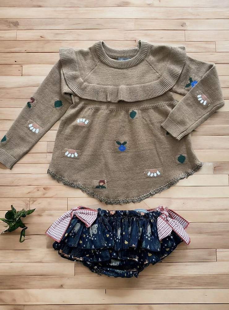 Jersey y braguita con volantes para niña de mon petit colección Bosque