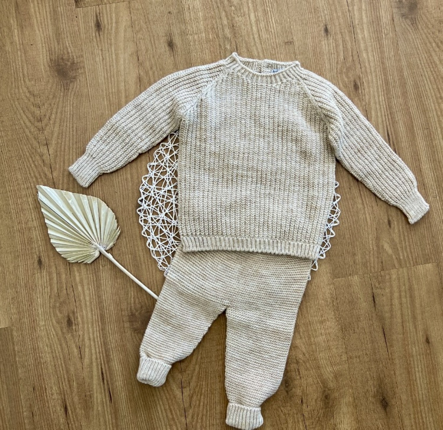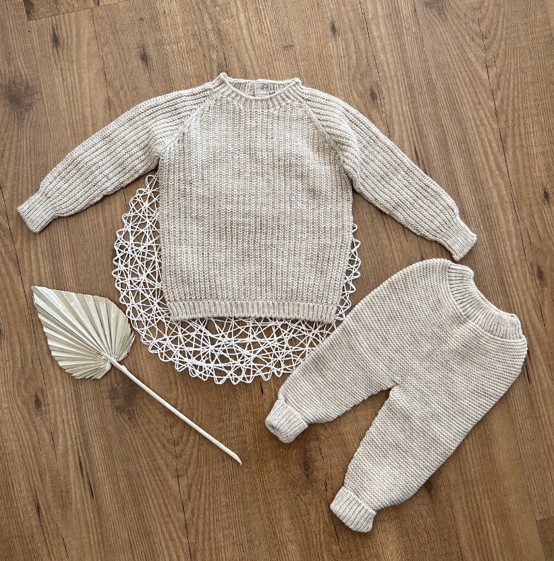 Confeccionado en punto color arena. Jersey en punto ingles y pantalón en punto bobo. Un conjunto muy cómodo y útil.