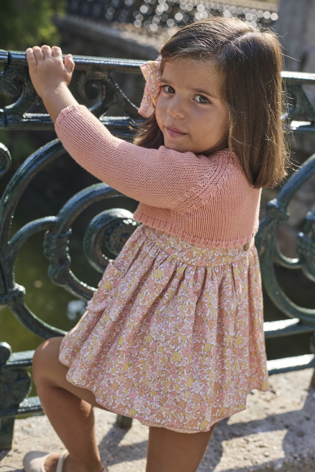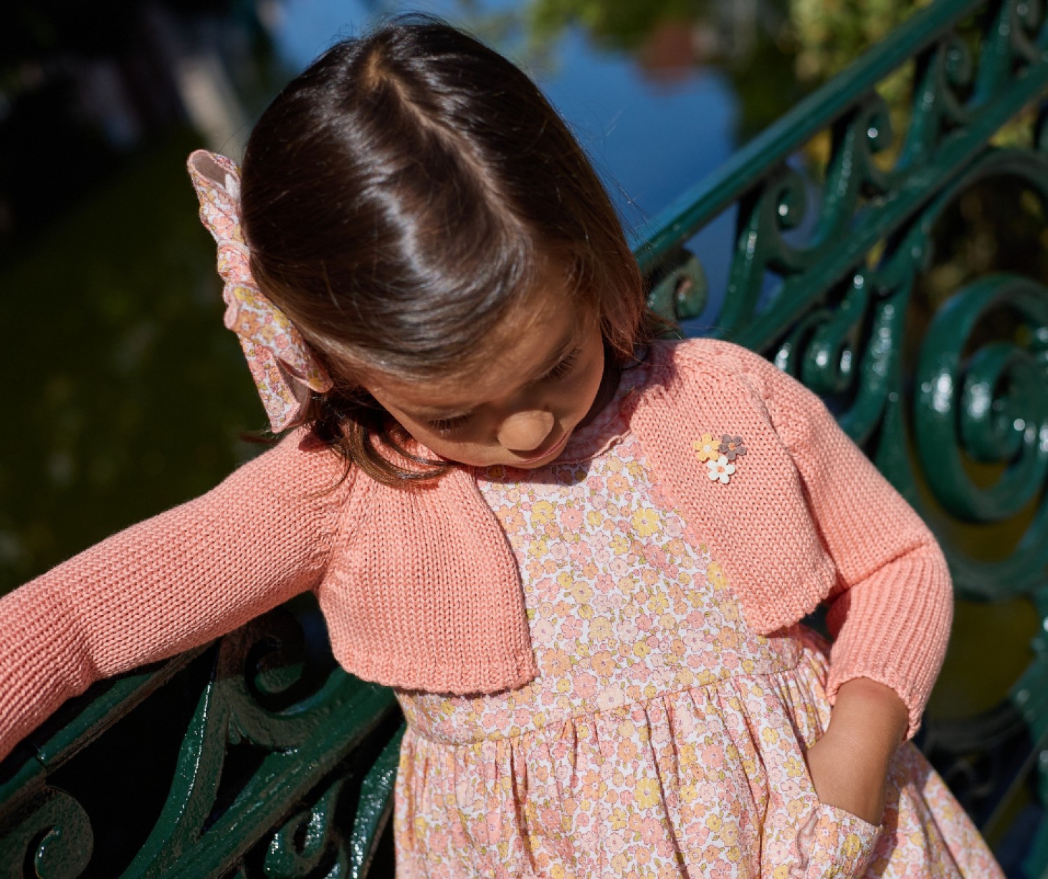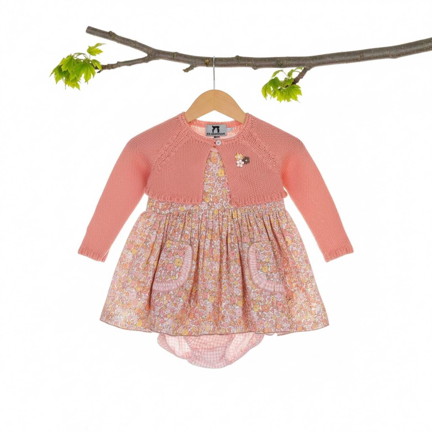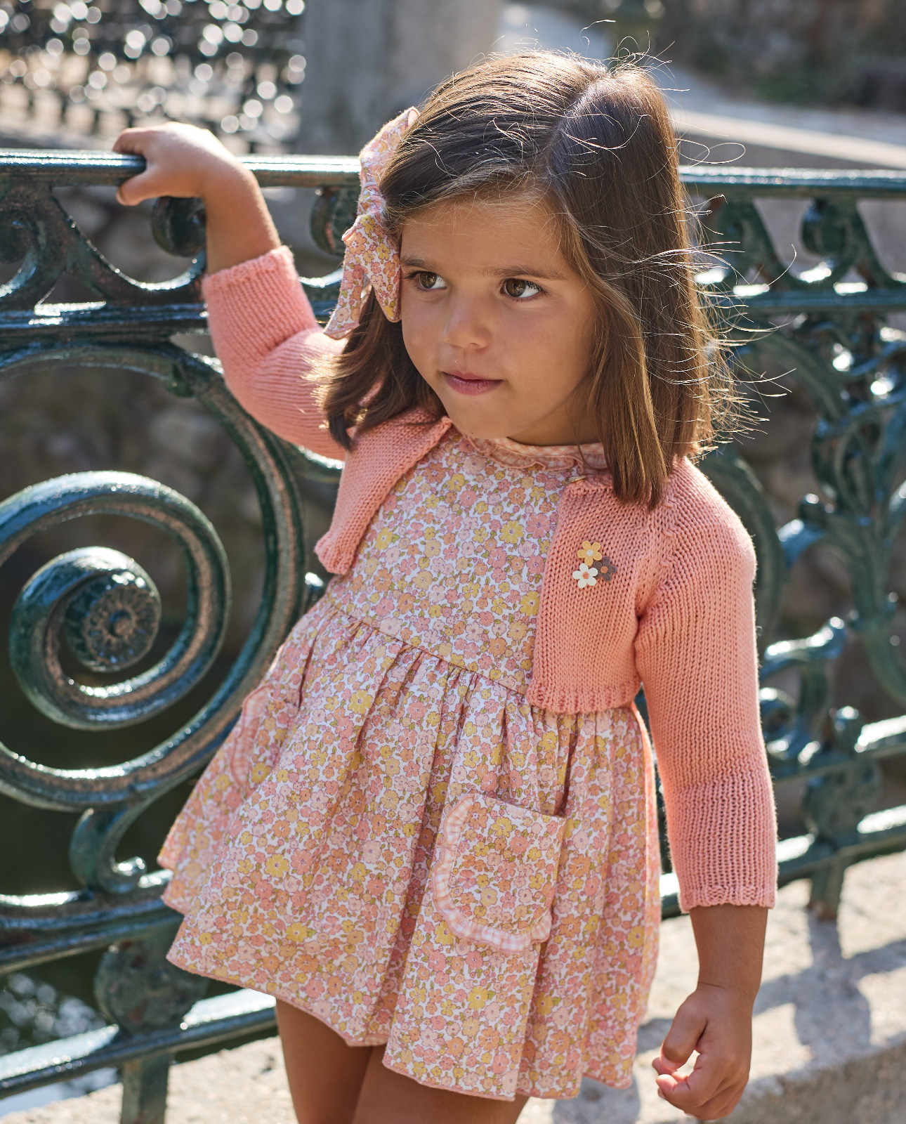 Incluye Jesusito estampado con delicado dibujo floral en tonos Mandarina, rosa y amarillo suave, con dos bolsillos delanteros en contraste vichy que aportan un toque muy especial. Se completa con braguita a juego y chaqueta de punto en color Mandarina, de tacto suave y cierre delantero con pequeño detalle decorativo.