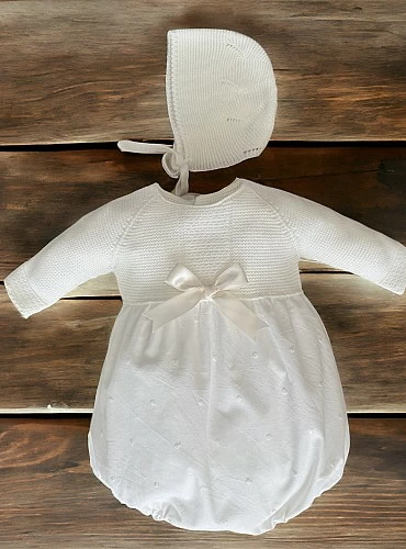 Pelele y capota para bautizo con cuerpo y capota de punto. Modelo Nube