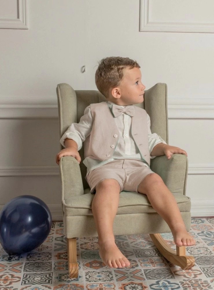 Es perfecto para ceremonia y arras, combina con la camisa de lino en color crudo y también con chaleco y pajarita.