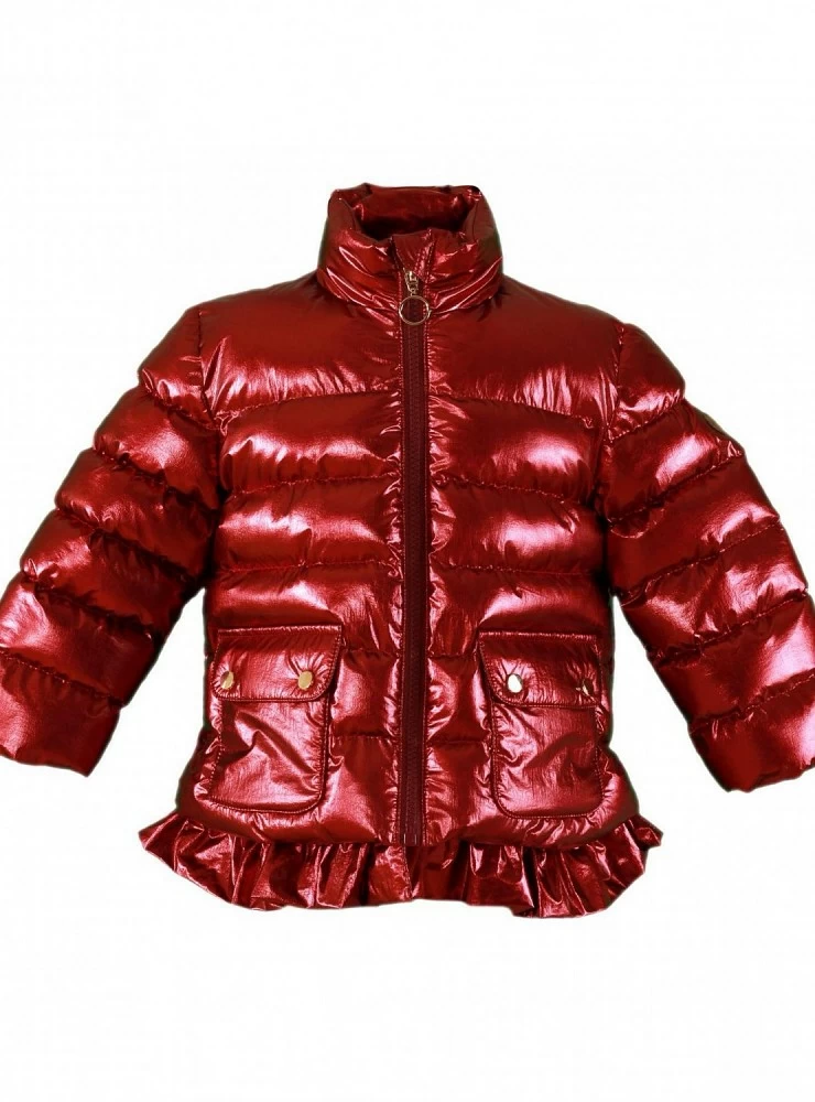 Es metalizada color granate casi rojo, es muy abrigada y acolchada con bajo tableado. Interior polar.