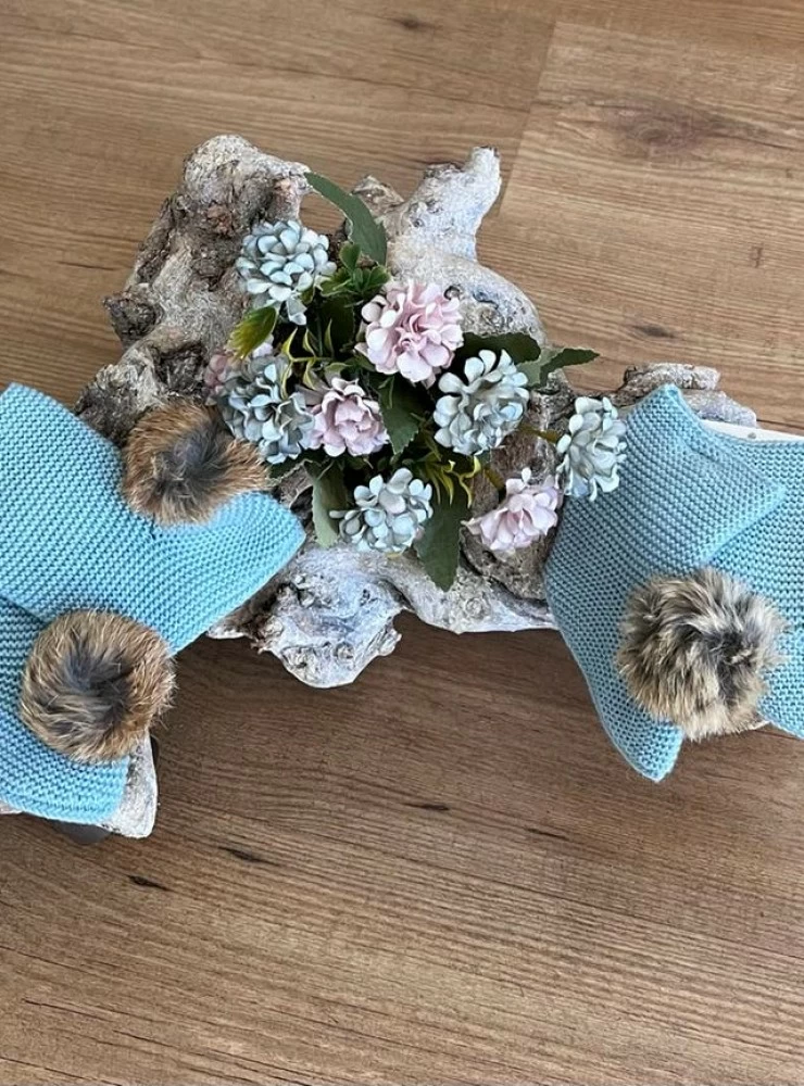 Patucos tipo botita con pompón de pelo