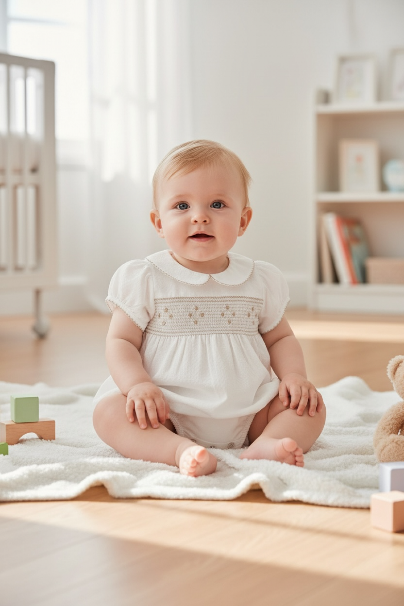 Pelele para niño beige con punto smock colección Quebec