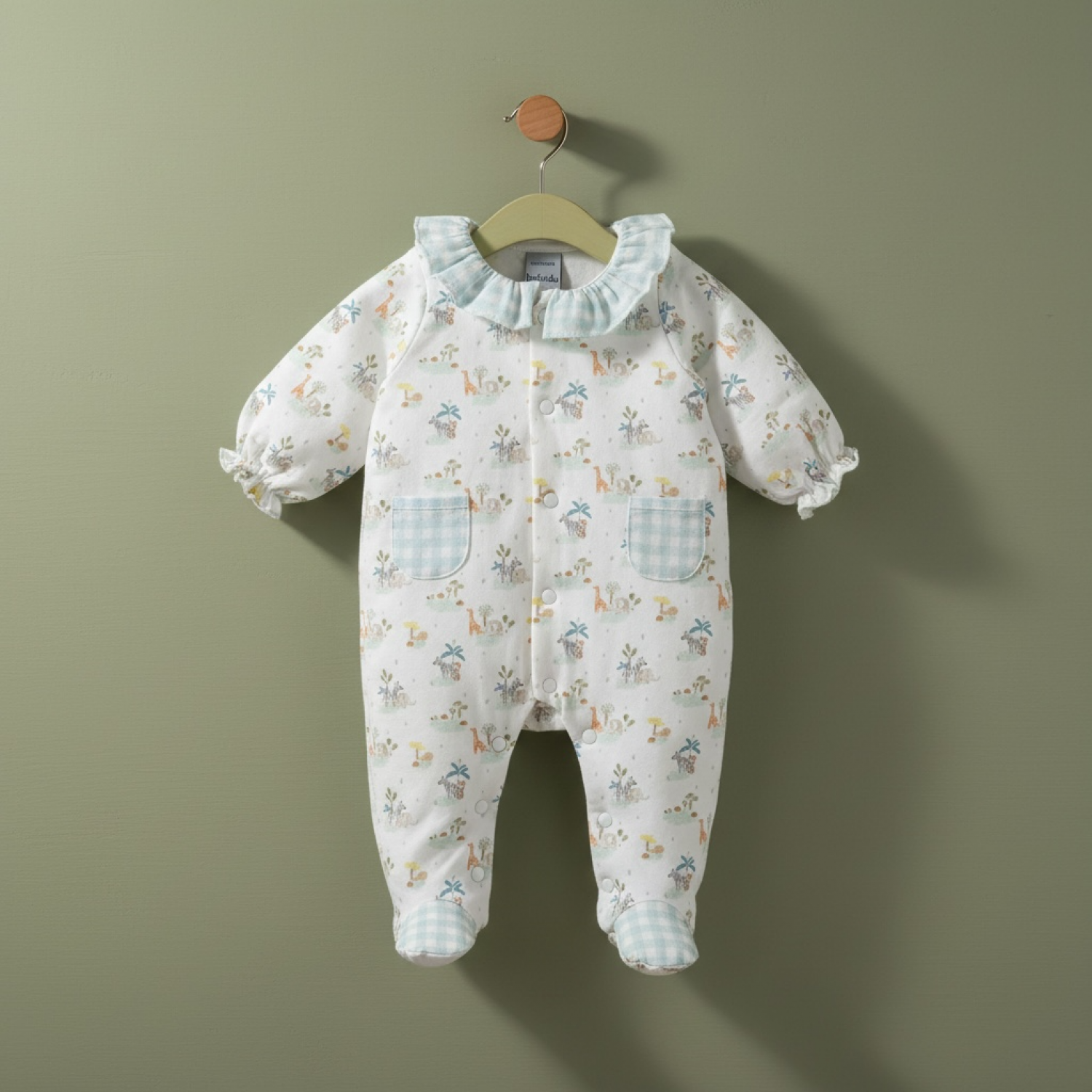 Estampado “aventura” en tonos suaves, muy dulce y fácil de combinar.