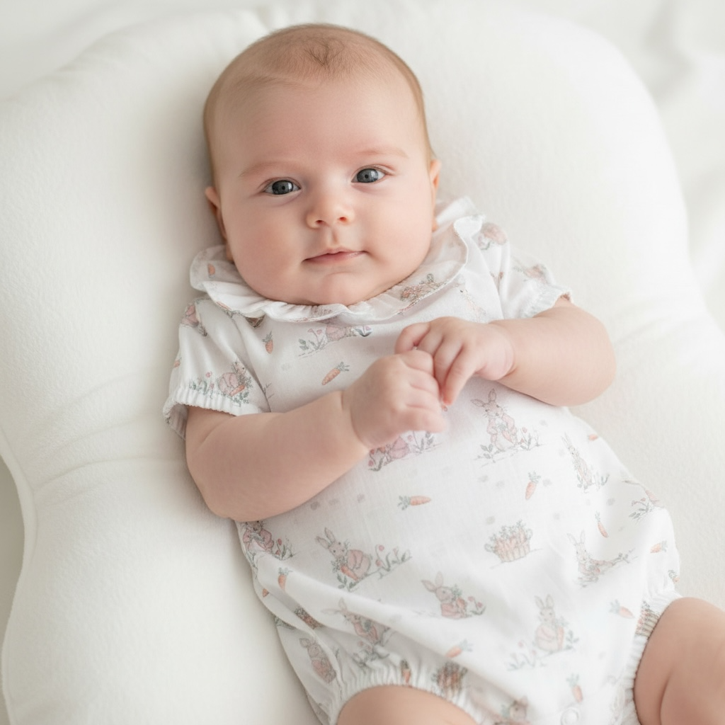 Pelele unisex en plumeti, ligero y muy suave para los días de primavera y verano.
