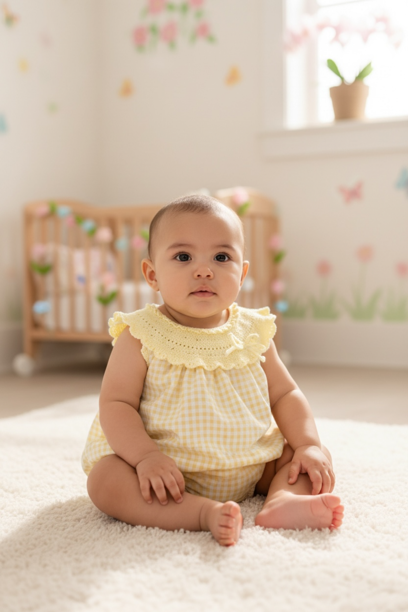 Pelele unisex punto y tela con cuadrito vichy en dos colores