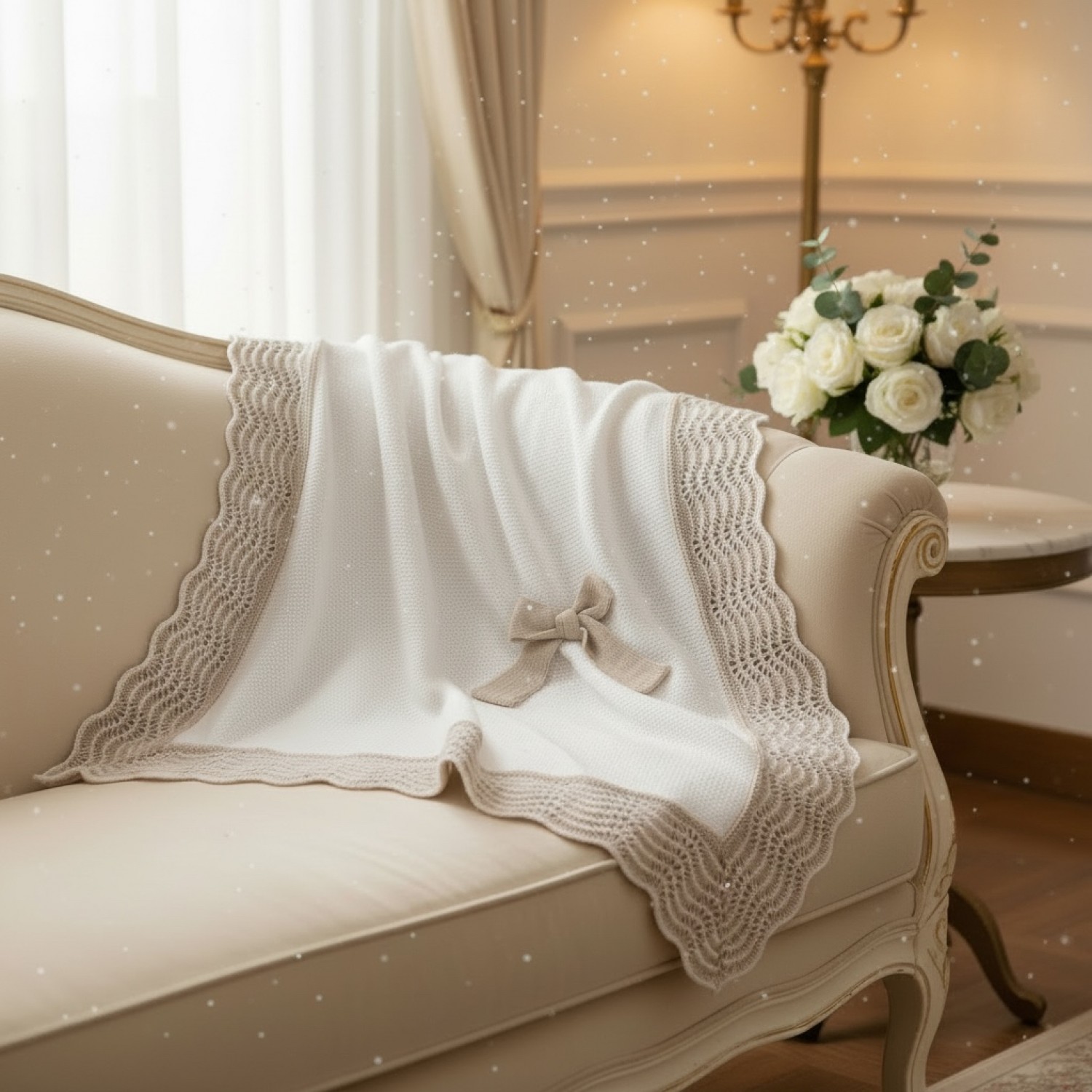 Confeccionado en punto ligero y transpirable, ideal para los meses más cálidos. Presenta dibujo calado en el borde inferior y lateral en color arena, aportando textura y un acabado delicado.