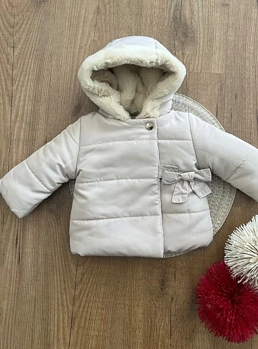Exterior acolchado en color celeste con interior polar en el mismo tono. Capucha desmontable