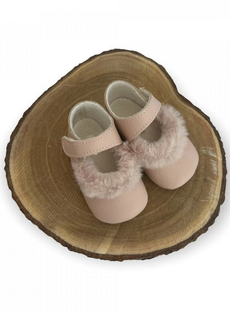 Zapatito para niña en dos colores. Rosa o beige con pelo.