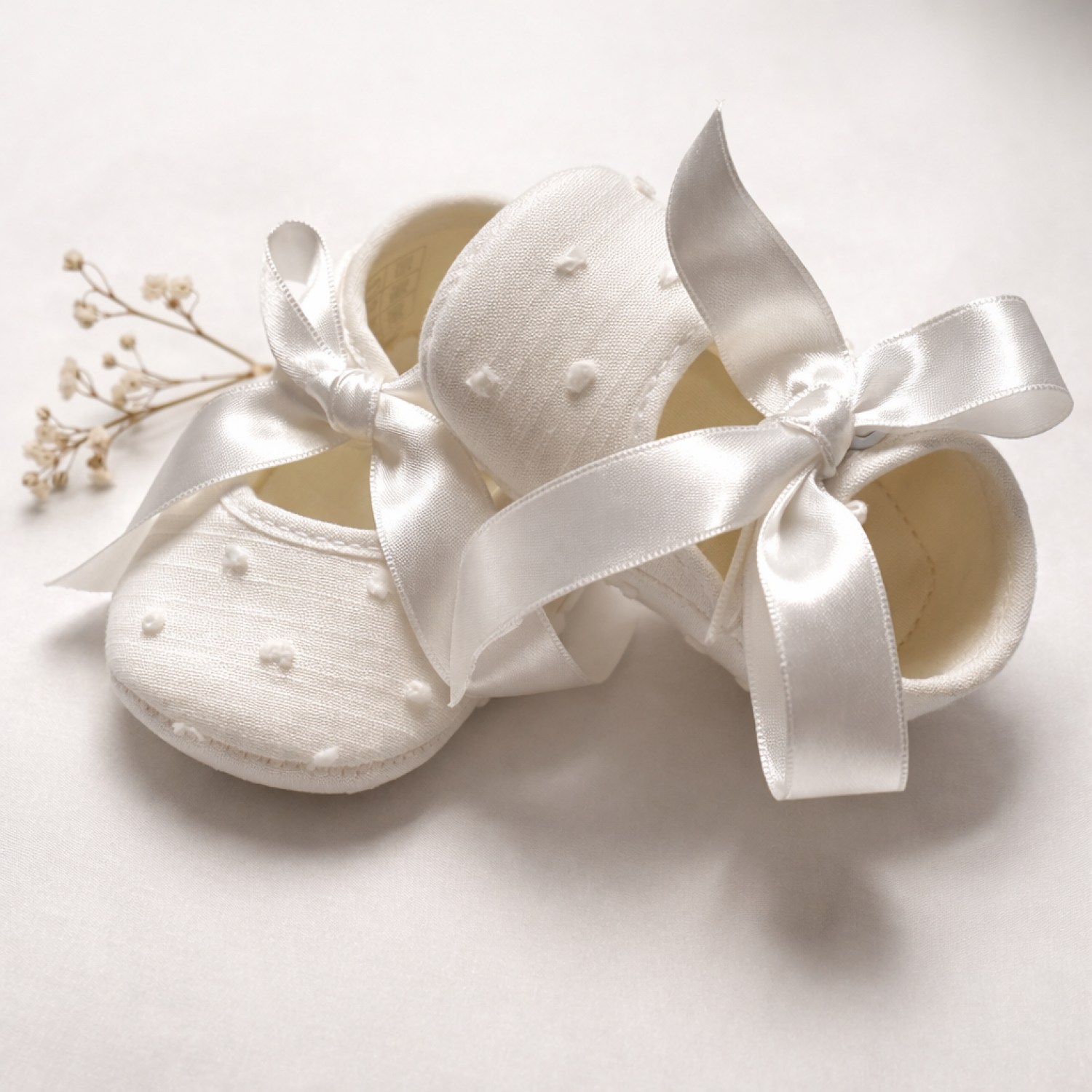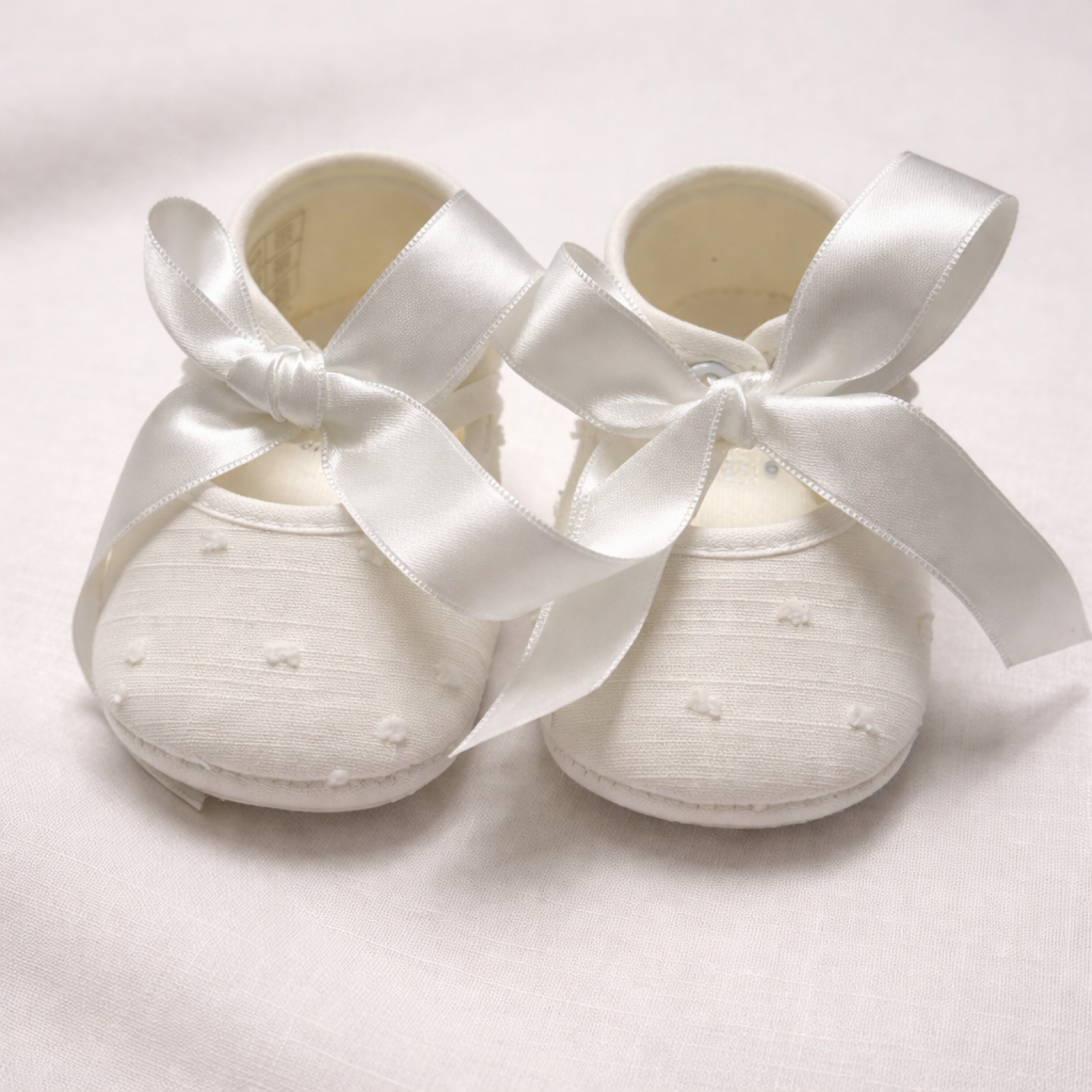 Zapatito unisex de lino color crudo con lazo de raso